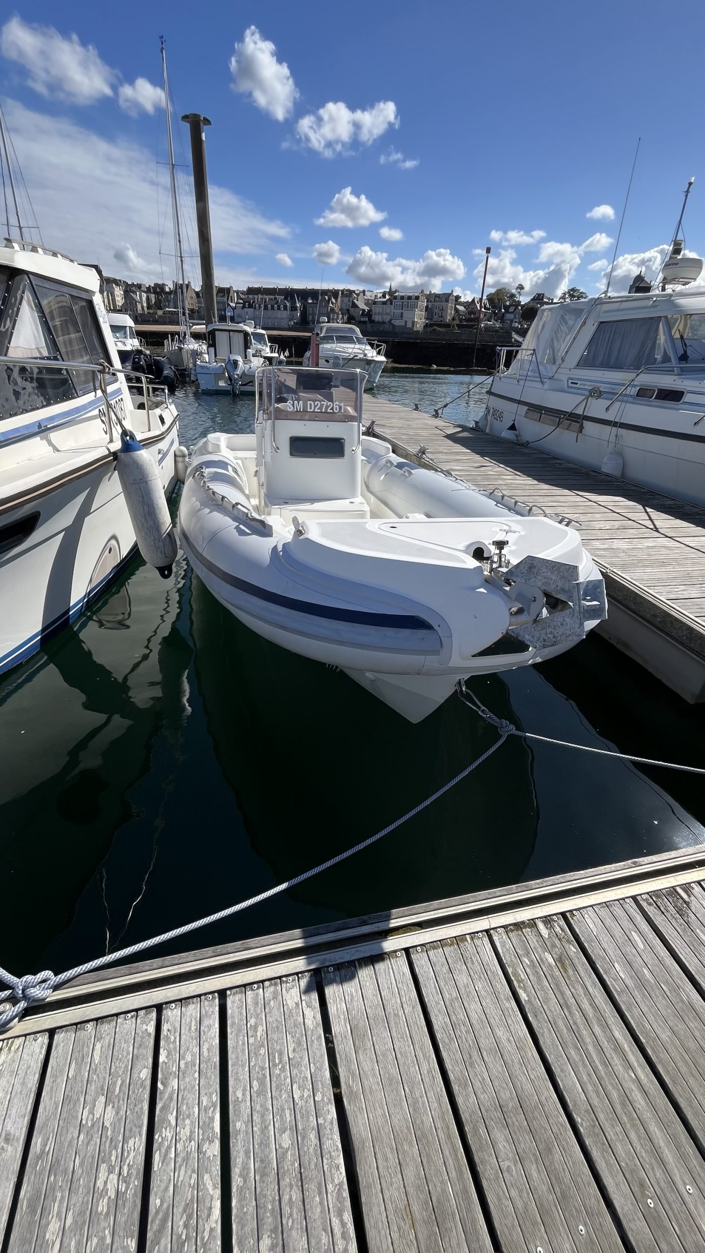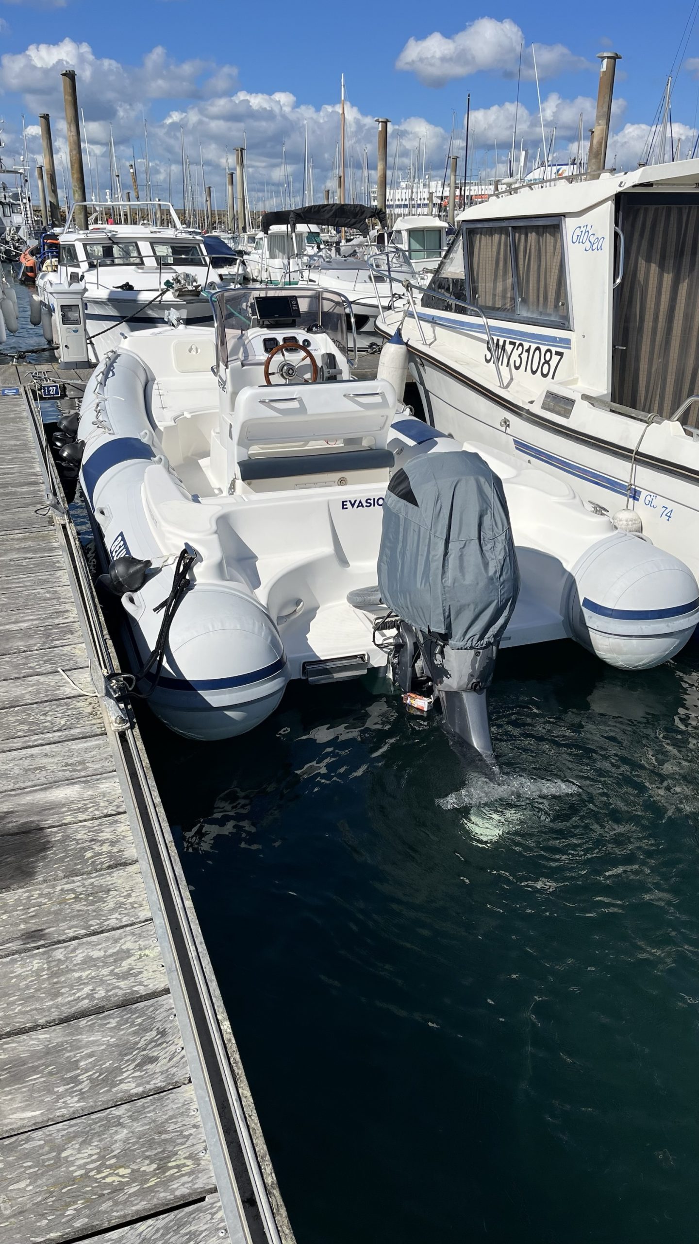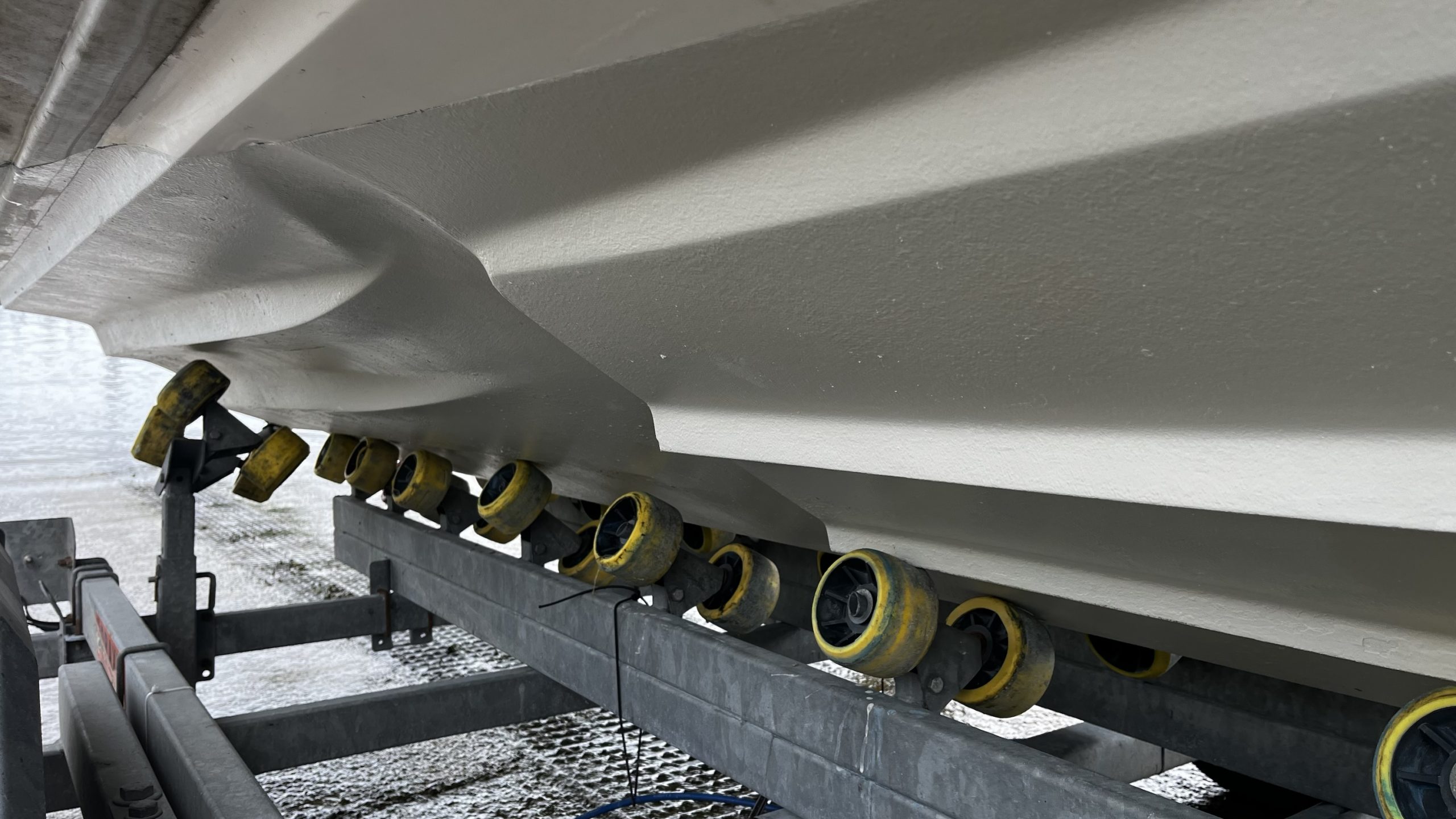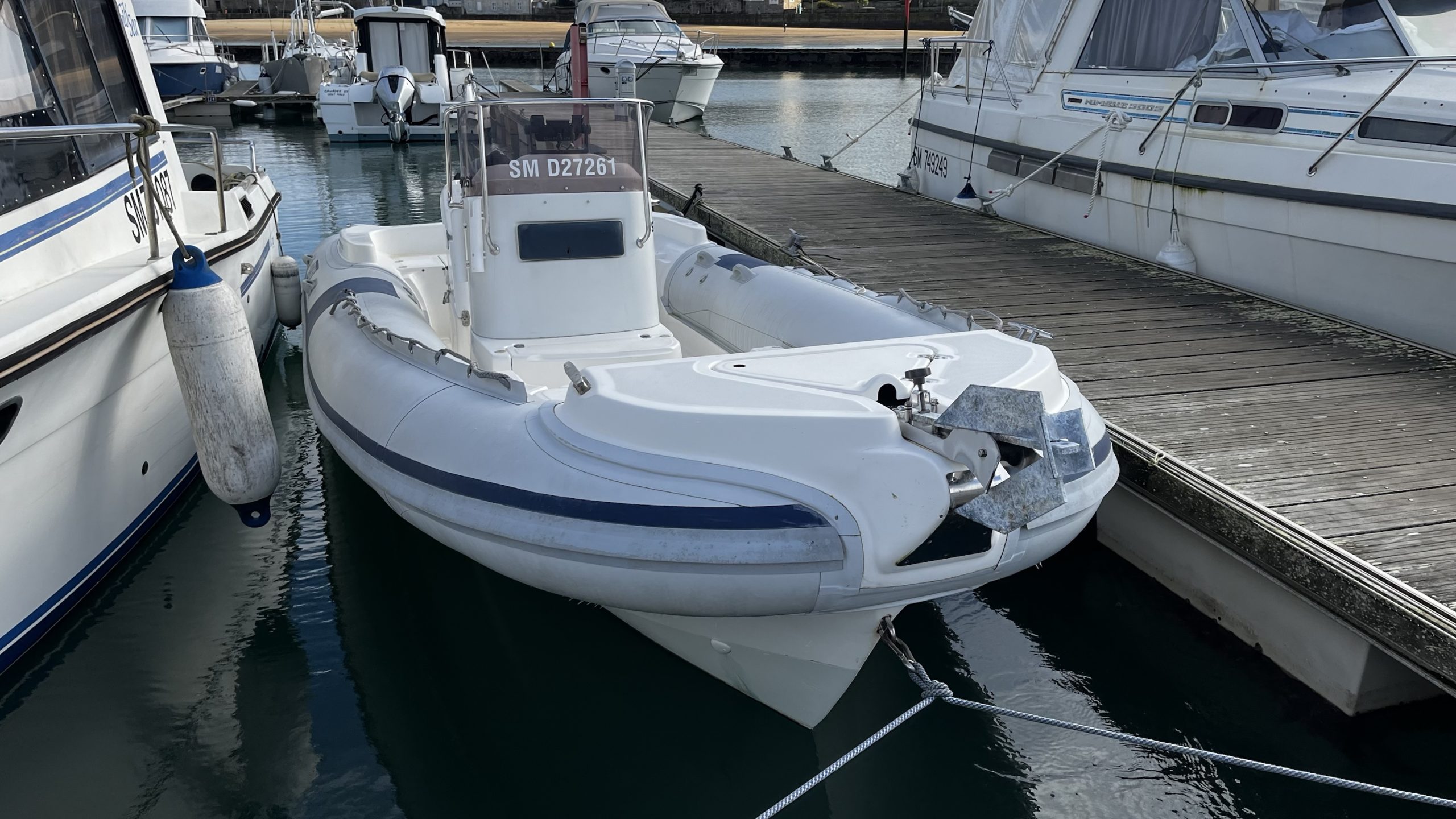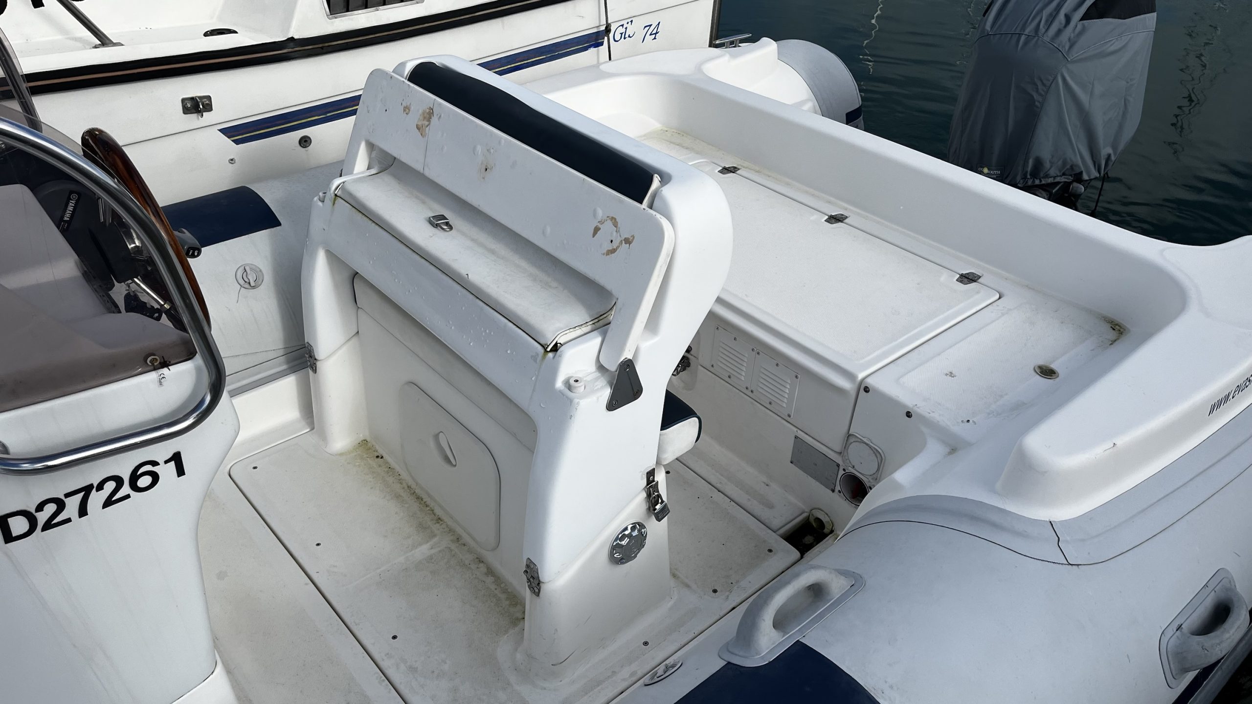Coque Italienne avec beaucoup de vé, étrave haute sur l’eau, carène à steps, nombreux coffres immenses, coussins av et ar, bain de soleil, réservoir+ jauge neufs, table, pompe de cale, combiné Garmin 9pouces …