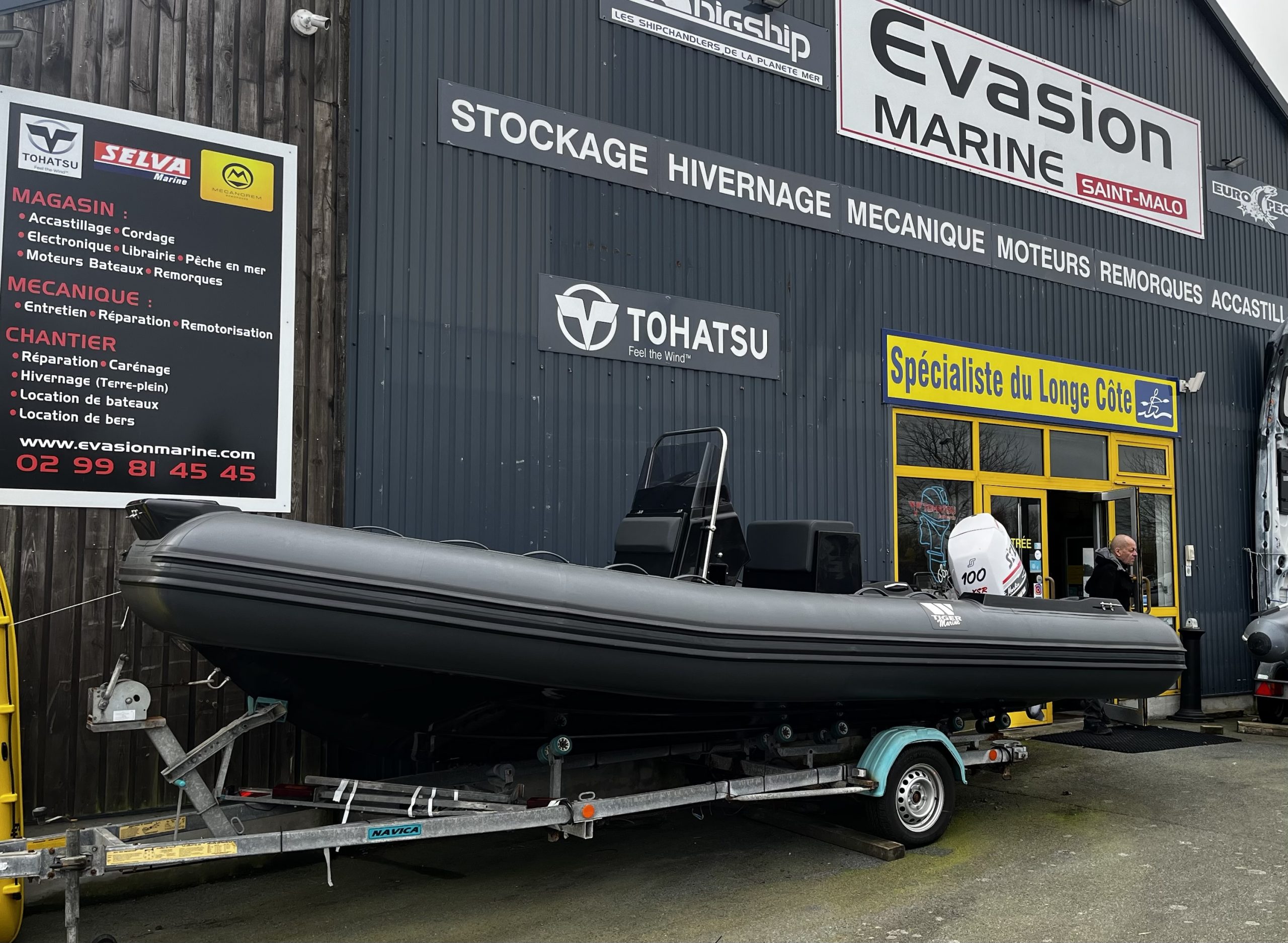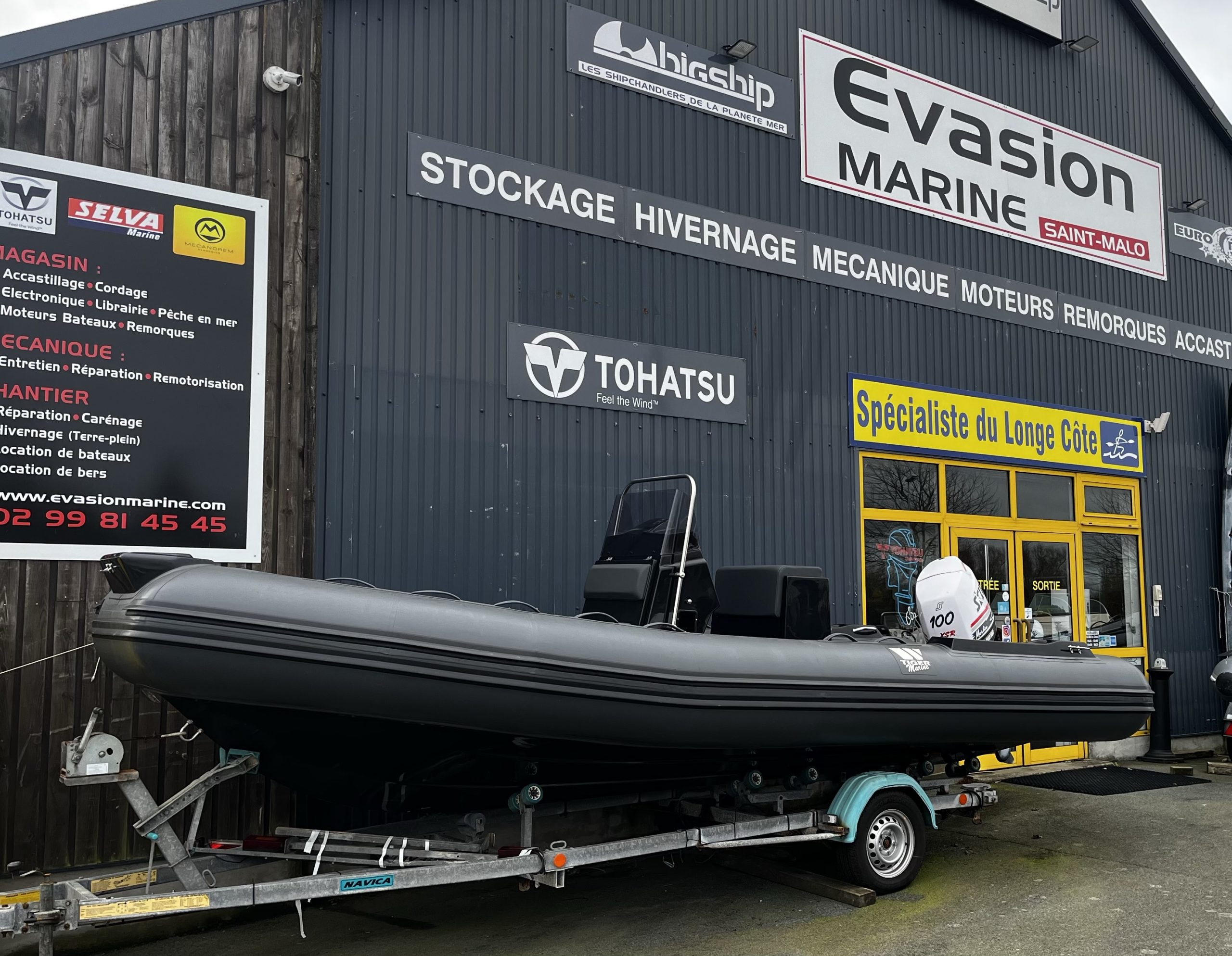Semi rigide TIGER 600 Open Line, flotteur gris foncé et coque gelcoat noir